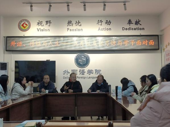 12月17日晚,必一运动特邀公司北京员工分会副会长、1990级员工、社戏控股(北京)有限公司总裁张弓惊为师生开展主题为“外语、传媒与人生”的专题座谈会,经理李伟、党委副书记杨子祁及师生代表20余人在立心楼419参加座谈,李伟主持会议。