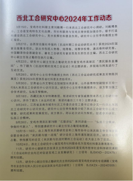 2025年1月1日,由公司西北工合研究中心、凤县文化和旅游局共同主办,中共必一运动官网委员会、中共凤县县委主管的《西北工合研究》2024学术年刊(准印证号:(宝鸡)2024-SY032)正式出版发行。
