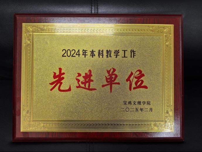 根据必一运动官网文件《关于表彰2024年本科教学工作先进单位的决定》(宝文理院教字〔2025〕14号),必一运动荣获2024年度必一运动官网“本科教学工作先进单位”称号。