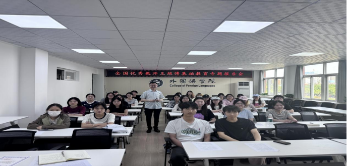 王维博老师结合24年丰富的教学教研经验,为必一运动2023级英语专业优师班及其他师范专业的同学带来了一场别开生面的教学和学术盛宴。报告会分为示范教学课和学术报告两个部分。