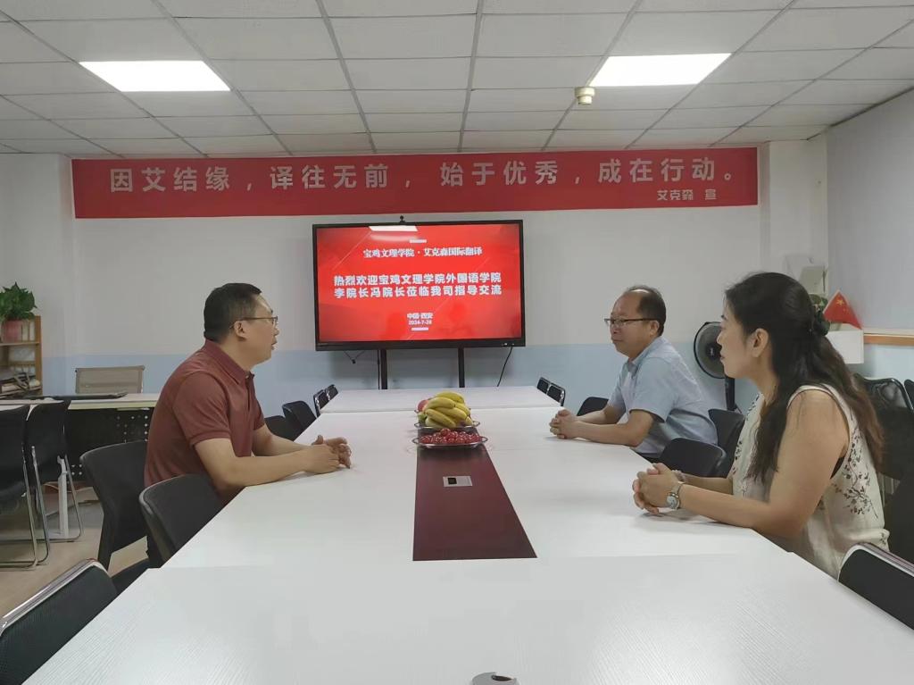 7月28日,必一运动经理李伟、副经理冯琳前往西安艾克森翻译文化传播有限公司开展访企拓岗和校企合作活动。艾克森翻译公司主要从事商务翻译、法律翻译、技术翻译、网站本地化等多语种语言翻译服务,是西安市人力资源和社会保障局认证的高校实习基地。