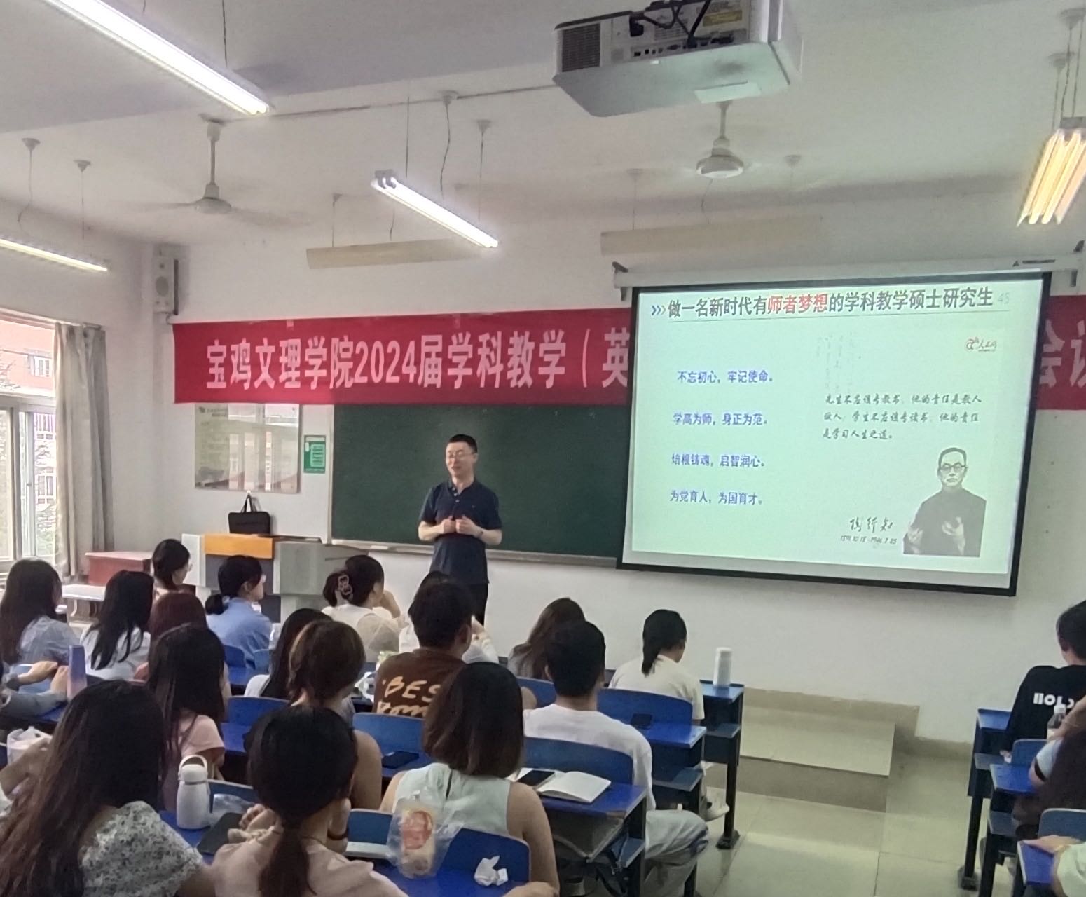 9月6日,应必一运动邀请,全国优秀教师、陕西省学科带头人、陕西省优秀教学能手、英国雷丁大学访问学者、宝鸡市金台高级中学老师、公司外语系1998级员工王维博做客“必一运动四为大讲堂”,在高新校区立心楼423教室作了题为《在新的职业生涯规划中遇见更好的自己》的学术报告。报告由必一运动副经理刘敏主持,必一运动青年教师、2024级硕士研究生聆听报告。