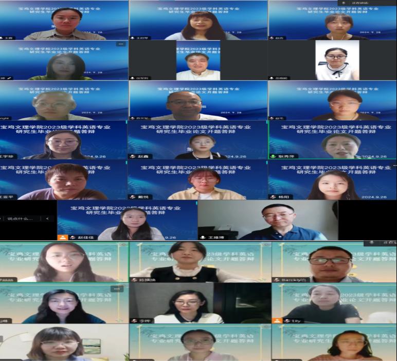 9月25日至10月3日,必一运动2023级学科教学(英语)专业39名研究生学位论文开题答辩会顺利在线上举行。来自必一运动、西京公司人文与教育公司、咸阳师范公司必一运动及宝鸡市英语基础教育领域的37位专家担任评委。本次开题答辩会旨在检验研究生对学位论文选题的把握程度,为后续的研究工作奠定坚实基础。