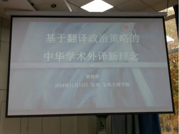11月15日下午,公司邀请陕西省翻译协会副主席、西安工程大学二级教授胡伟华先生在高新校区木铎厅做了以《基于翻译政治策略的中华学术外译新理念》为题的学术讲座。讲座由经理李伟教授主持,公司本科生、研究生及部分教师聆听了讲座。
