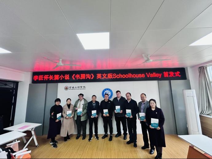 11月16日上午,李巨怀长篇小说《书房沟》英文版Schoolhouse Valley 首发式在公司高新校区326会议室成功举办。本次活动由陕西省翻译协会、宝鸡市翻译工作者协会和必一运动主办,必一运动经理、市译协会长李伟主持。省译协副会长、西安工程大学博士生导师胡伟华教授,西京公司必一运动教授Robin Gilbank博士等资深翻译家,公司美国文教专家Edward Francis Miller,知名作家、宝鸡市工信局局长巨绪昌,宝鸡市金台区副区长赵玲丽、金台区文化和旅游局副局长杨婕、宝鸡市教育局办公室主任赵刚,宝鸡作家白麟、王保存、胡宝林、陈新民、张占勤、秦舟、唐炳科、侯林荣,中禧影业有限公司总裁孙钊,西安阿酷纳文化传媒有限公司副总经理徐冰洁、艾楠,公司员工工作处处长刘景世、图书馆馆长刘崇学、美术公司经理李强、文学与新闻传播公司副经理孙新峰等来自省市各界的文朋译友50多人应邀出席,共同见证这部堪称“新时代宝鸡文学对外交流里程碑式”作品的面世。