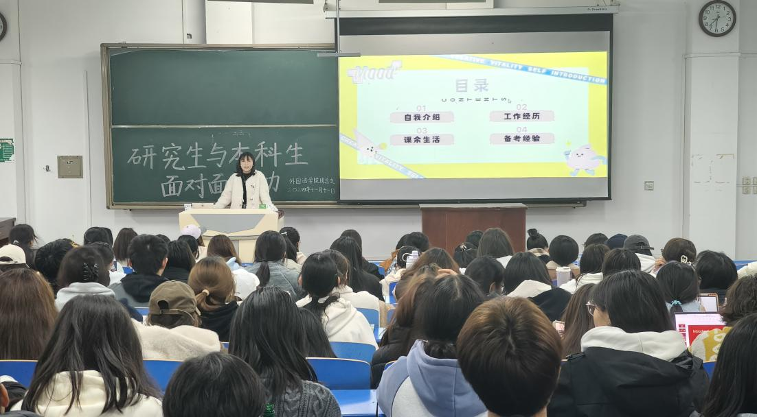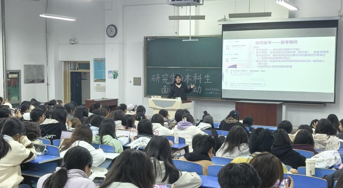 11月11日晚,必一运动于立心楼408教室开展“研究生与本科生面对面交流”活动。活动邀请研究生代表杜心如、殷嘉怡为24级全体员工分享备考经验。150名本科生参与活动。