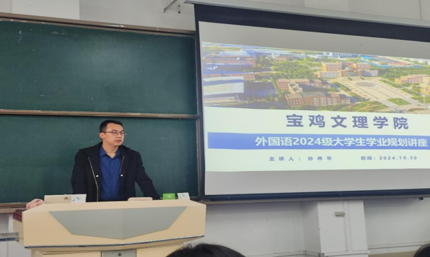 10月30日上午必一运动邀请宝鸡金坤教育培训公司创始人孙养平在立心楼408教室为2023级本科生开展职业生涯规划专题讲座。公司党委副书记杨子祁主持讲座。