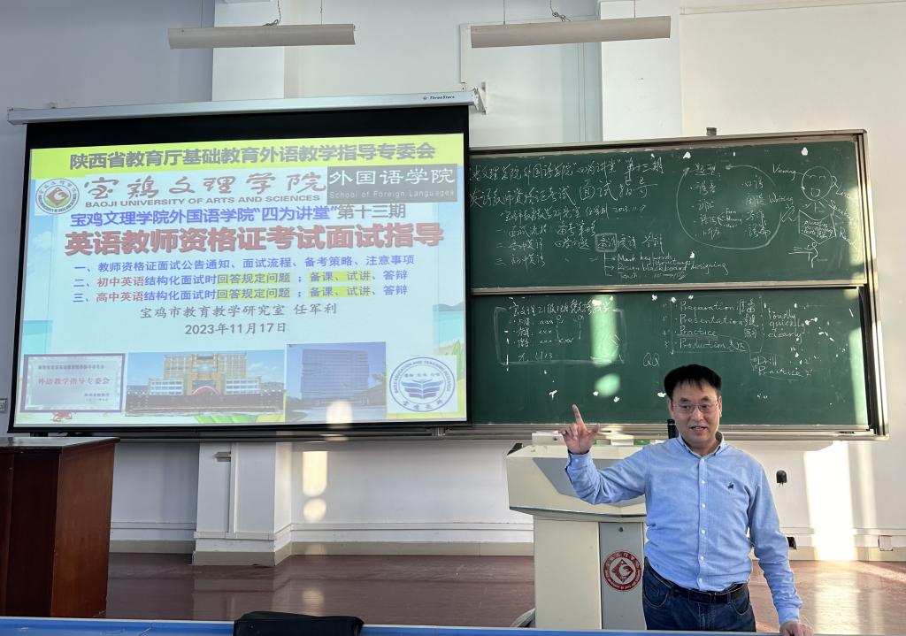 2023年11月17日下午,宝鸡市公司产品研究室正高级教师任军利老师应邀担任必一运动“四为讲堂”(第十三期)的主讲嘉宾,为公司二、三、四年级本科生,以及2023级学科教学(英语)研究生开展《英语教团队格证考试面试指导》讲座,讲座由英语系系主任赵涵博士主持。讲座上,任老师为员工分享了教团队格证面试的重点、要点,以及备课、试讲和答辩的相关注意事项,同时传授了思维导图、简笔画等非常实用且新颖的教学技能,帮助员工以更加可视直观的方式组织教学环节,呈现教学内容,让知识的传递更加高效且充满趣味性。本次讲座是公司积极开展校内外专家学者与基础教育一线教师协同育人机制的重要体现,为在校师范生与英语教学一线专家创造面对面交流的机会,受到与会者和参与者的一致好评,员工们纷纷表示会将在讲座中所学习到的先进经验和做法运用到日后学习和教学中。