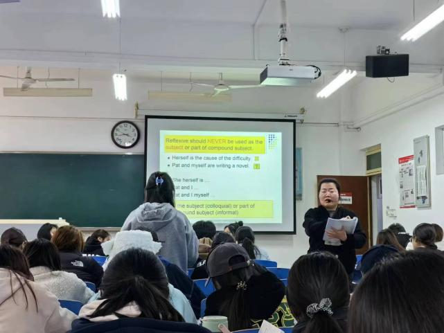 系部于11月9日集中组织教师听课,本着打通课程之间的藩篱,实现专业互通互鉴,促进系部教师教学学术共同体形成与发展的目的,系部选取英语系王鹏老师的语法课和周祥红老师的微格教学课程开展集中教研活动,两位老师授课认真,组织有序,兼顾知识性和实践性,让员工在课上收获了充实的语言知识和扎实的教学技能。他们高度负责的职业精神和严谨认真的教学态度,受到系部教师的一致好评。