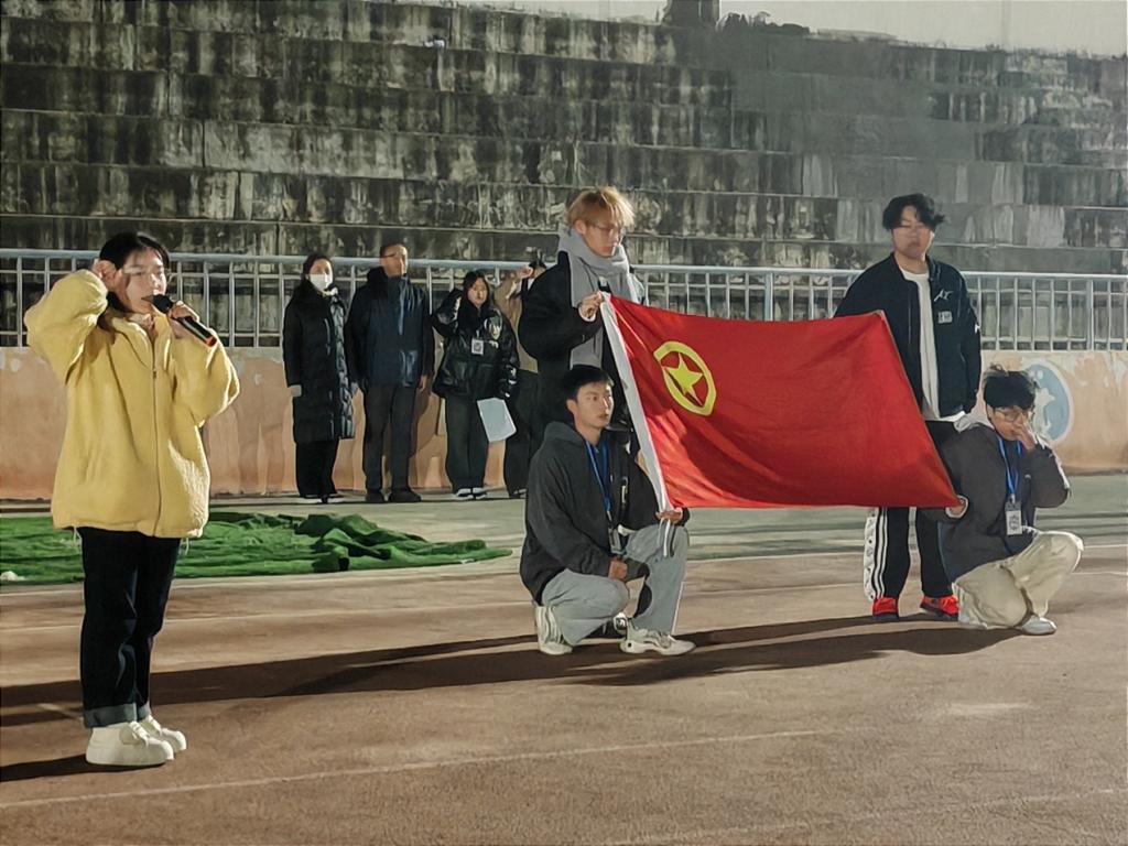 优秀团员代表司涵哲进行领誓,让同学们能够更深刻体会红色基因的精神内核,将满怀信仰和爱国情怀,甘愿将个人的命运与祖国的命运紧密相连。