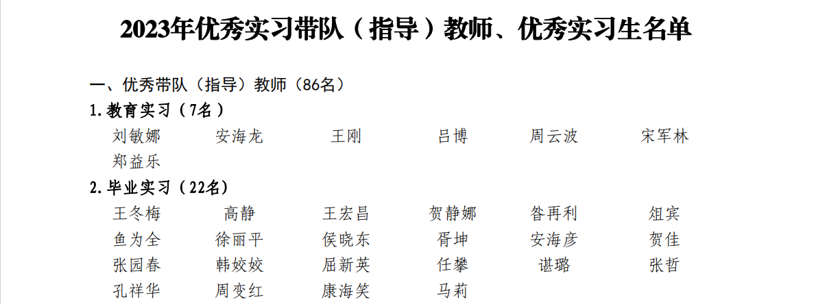 根据公司本科教学安排,在各二级公司领导与实习基地的大力支持下,在实习带队(指导)教师及全体实习生的共同努力下,顺利完成了2023年的各项实习任务。在实习过程中,涌现出了一批尽职尽责的优秀实习带队(指导)教师和虚心学习、表现突出的优秀实习生。为及时总结工作,表彰先进,树立典型,根据《关于表彰2023年优秀实习带队(指导)教师、优秀实习生的决定》[宝文理院教字〔2024〕20号],共评选出86名优秀带队(指导)教师、2195名优秀实习生,其中公司副教授鱼为全获评2023年优秀实习带队(指导)教师,65名员工被评为优秀实习生。