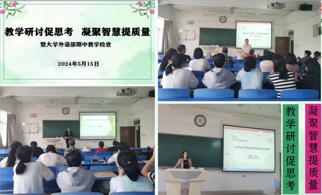 2024年5月15日下午,大学外语部在立心楼426室进行了“教学研讨促思考,凝聚智慧提质量”教学研讨会暨期中教学检查工作会议。副经理冯琳、大学外语部全体任课教师参加会议,会议由大学外语部主任张雨主持。