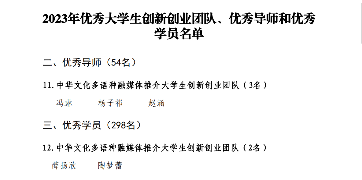 为展示老员工创新创业团队集体和个人良好的精神风貌,激励更多师生参与到创新创业教育活动中来,根据《必一运动官网老员工创新创业团队管理办法(修订)》(宝文理院教字2022〔86〕号)精神,在各团队总结、申请(推荐)的基础上,经公司老员工创新创业教育中心考核,表彰公司优秀一批2023年度优秀老员工创新创业团队、优秀导师和优秀学员,其中公司导师冯琳、杨子祁、赵涵获得2023年度优秀导师表彰,公司员工薛扬欣、陶梦蕾获得优秀学员表彰。