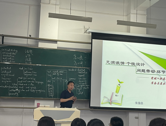 张老师的讲座主要围绕如何准备与展示一堂充满激情、个性设计、问题带动、环节齐全的入职英语微课。首先,张老师详细介绍了课堂要体现即将入职教师的教学经验、应变能力、教学理念、驾驭能力、知识功底、书写功底、语言功底等。其次,张老师分三个方面细致讲解了如何把课文当作阅读课、语言知识和写作进行教学。之后张老师提到师生们应当对教材有所探索,课堂要有灵性,课堂要充满激情,要认真备课,课堂以问题带动,课堂环节要齐全,自如应对答辩。在报告进行过程中和尾声,张老师设置了问题互动环节并赠送自己准备的礼物——书法作品,师生们争先恐后提出问题并得到了张老师全面又细致的解答,最后报告以师生们的热烈掌声而结束。