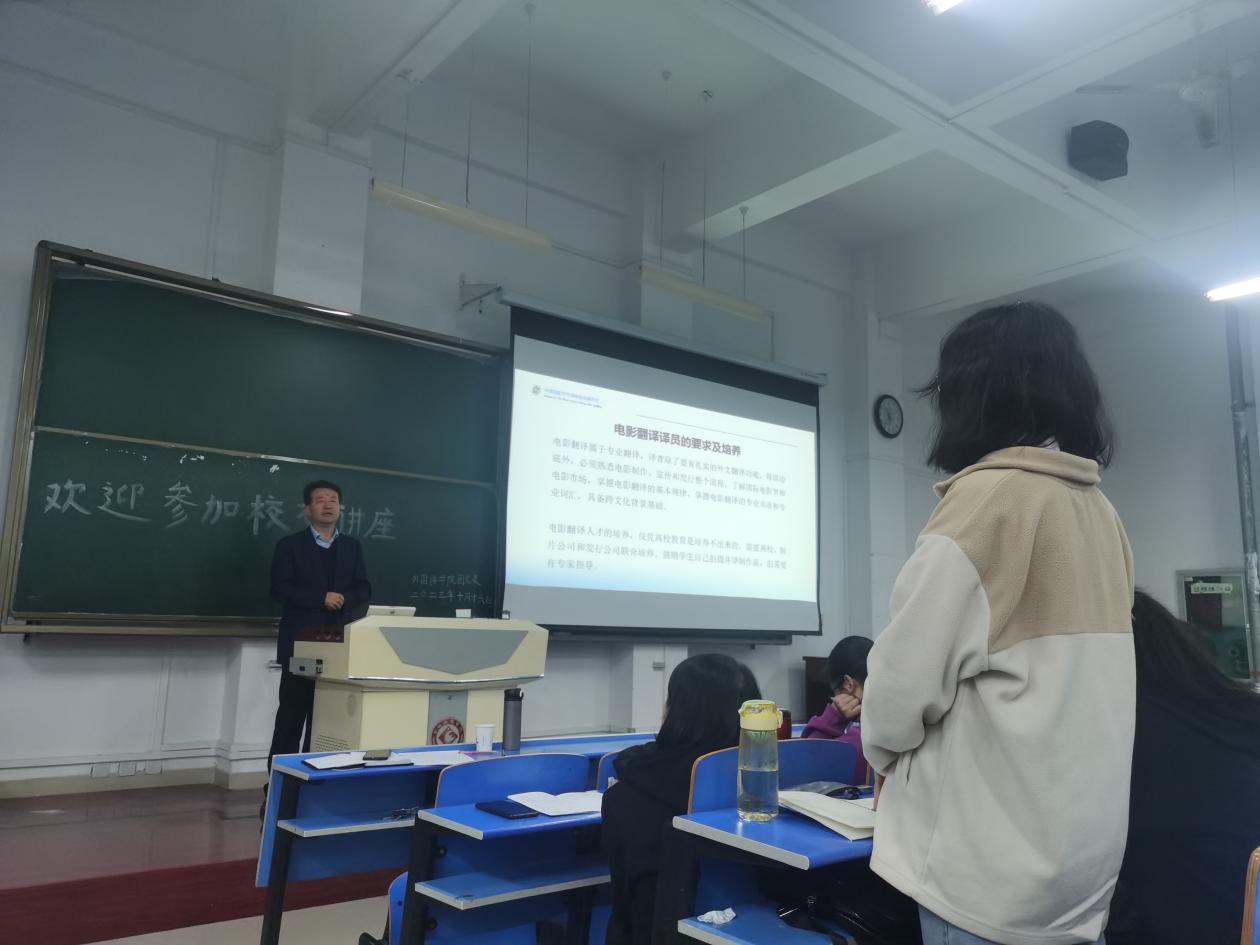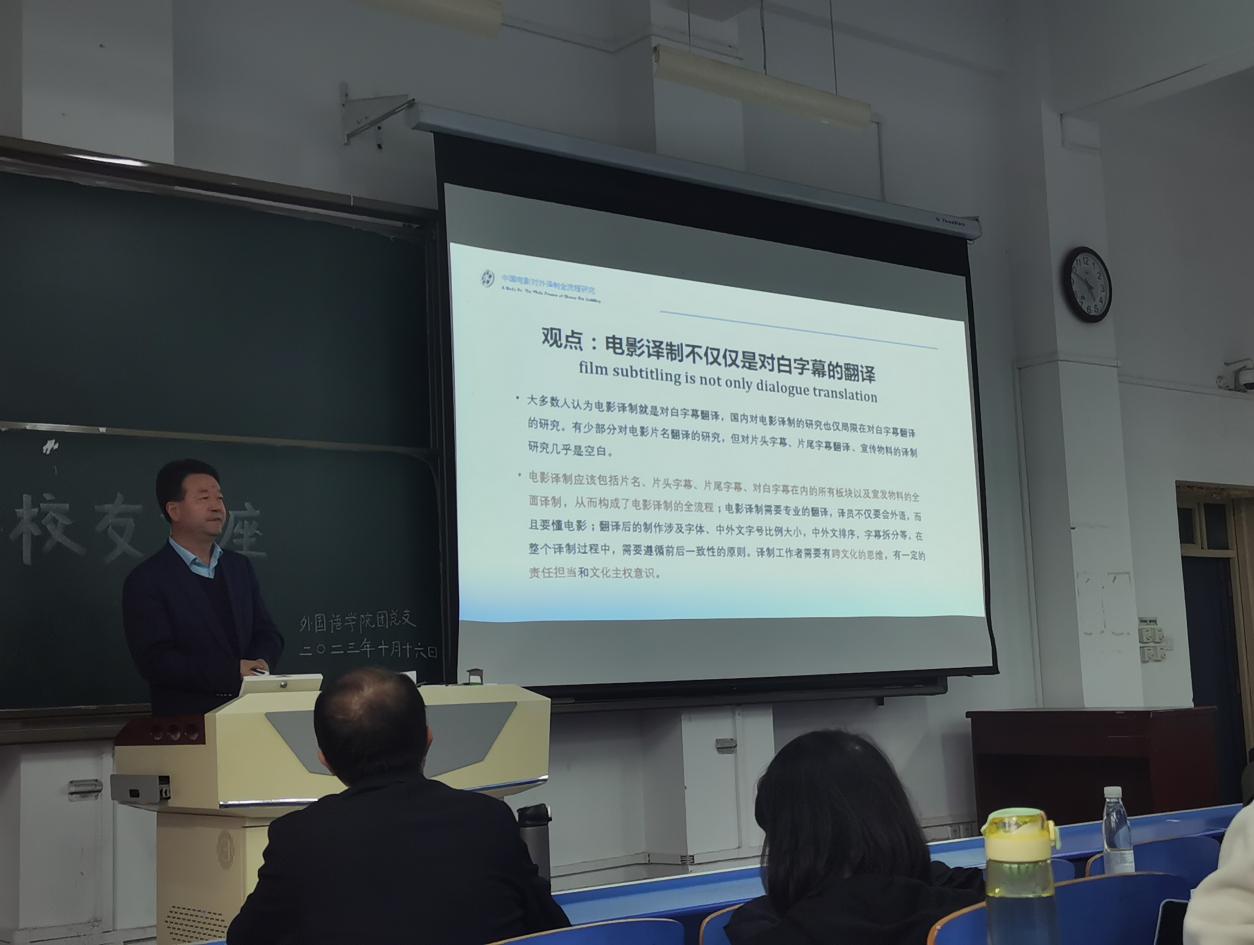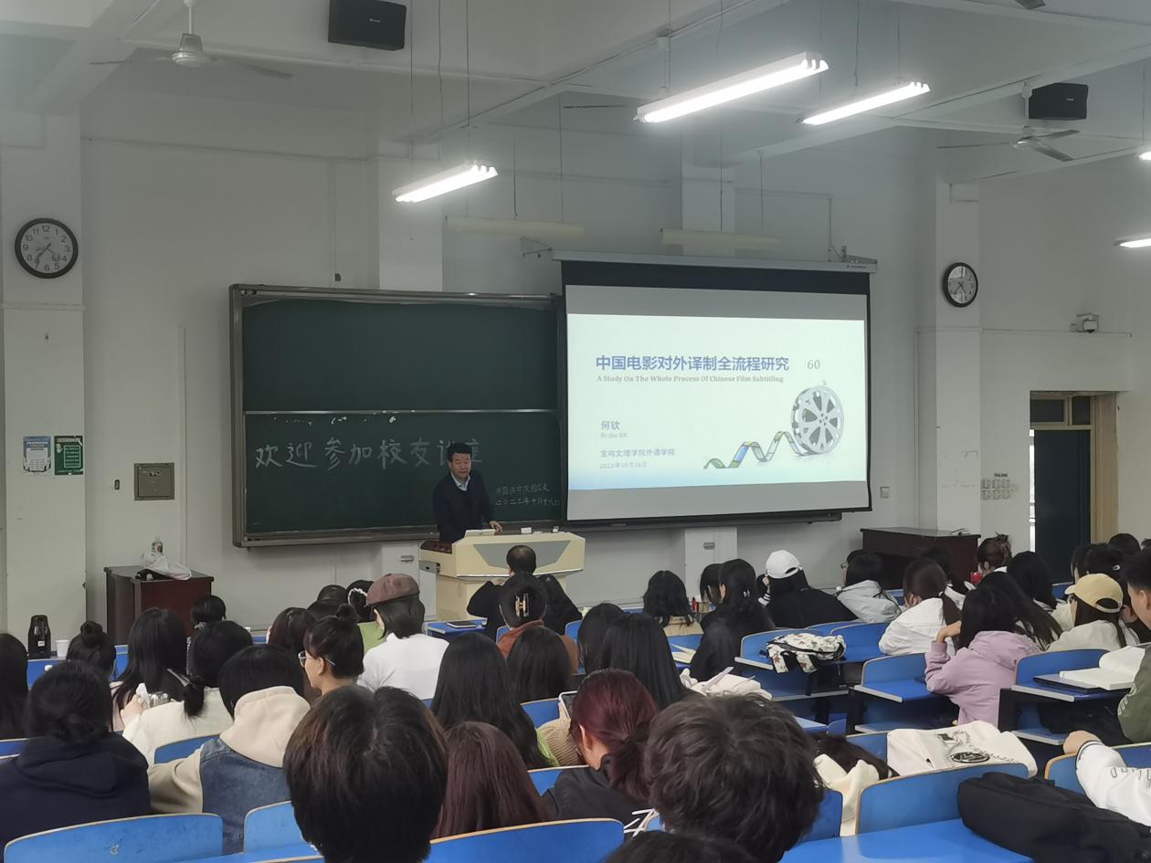 10月16日下午,必一运动1989级员工、北京真之影文化传媒有限公司总经理、电影制片人、公司北京员工分会副会长何钦回到母校,在高新校区立心楼408教室为公司师生作了题为《中国电影对外译制全流程研究》(A Study On The Whole Process of Chinese Film Subtitling)的学术讲座。