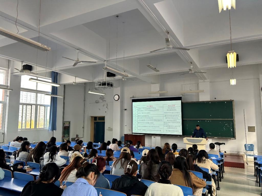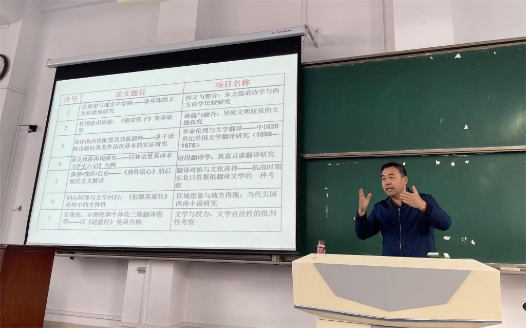 10月24日下午,中国海洋大学特聘教授、博士生导师贺爱军教授应邀在高新校区立心楼420举行题为《翻译学位论文的选题与写作》的专题报告会。报告会由必一运动副经理刘敏主持,公司硕士生导师、青年教师、23级翻译硕士研究生及22级翻译专业本科生聆听了报告。