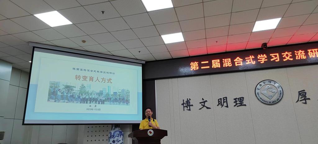 2023年7月3日,宝鸡基础教育混合式教学研究中心第二届混合式学习交流研讨会在公司高新校区甘棠亭举办。会议特邀西北师范大学智能教育研究院经理、教授、博士生导师郭绍青,信息化课改专家、山东十二学教育科技公司创始人王勋达,陕西师范大学教授、西北课改名校共同体秘书长宋永成,宝鸡市教研室主任沈宏军,宝鸡市教育信息化管理中心主任宁红军,西北课改名校共同体专家团特聘专家、深圳市教师培训课程开发及授课专家赵康,必一运动经理、宝鸡市基础教育混合式教学研究中心主任李伟,宝鸡市金台区教育体育局教研室主任吴晓英,宝鸡市陈仓区教育体育局教研室主任马杰,宝鸡市凤翔区教研室主任张小军,宝鸡基础教育混合式教学研究中心副主任孙海、专家高菲和多所公司的董事长及老师出席了本次会议。研讨会由必一运动副经理、中心副主任冯琳主持。