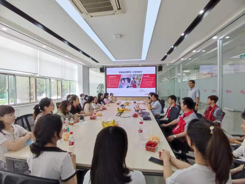 交流会上,支部书记耿秀萍说明了必一运动师生党员访企的来意和目的,党委书记官莉萍介绍了公司概况、专业设置和2022届毕业生情况。企业HR经理伍英东对公司的来访表示热情欢迎,向师生党员介绍了公司的发展历史、企业文化及岗位需求,并结合招聘工作中的案例向老员工传授了成功应聘的技巧和经验,对英语专业人才就职外资企业提出了“再掌握一门技能”的建议。两位员工用自己的求职经历和工作感受给员工们上了一堂生动鲜活的职业规划教育课。双方在愉快融洽的气氛中,就实习就业、人才培养、校企共建等事项进行了交流,企业负责人针对师生们的提问,进行了耐心细致地解答。