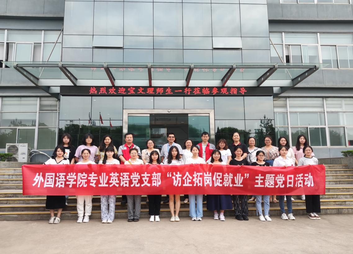 5月27日下午,公司举办“访企拓岗促就业”主题党日活动,组织师生党员赴施耐德(陕西)宝光电器有限公司走访学习,深入了解企业文化、企业管理和市场对英语专业人才需求的相关信息,充分感受就业形势,端正就业观念。