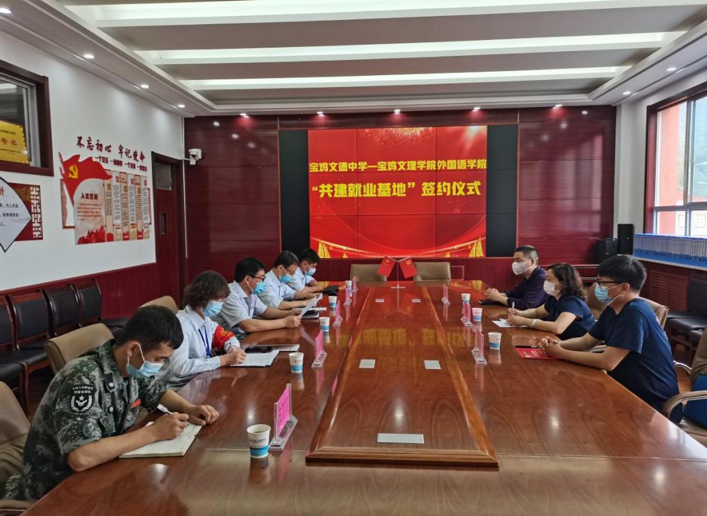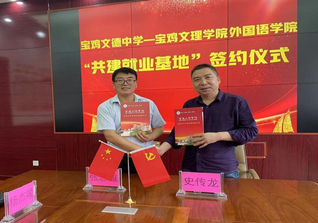 5月26日下午,公司党委书记官莉萍、副经理史传龙一行走访宝鸡市文德中学,回访员工,签订合作协议,建立就业基地,带回了高中英语、生物、语文、体育等教师岗位。