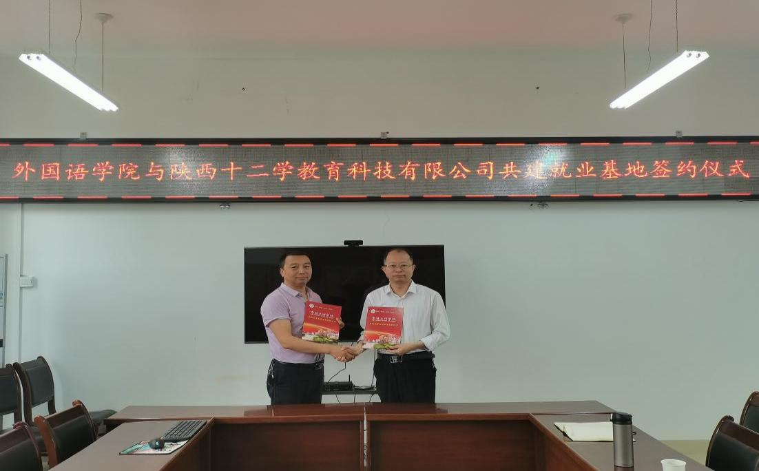 经理李伟与陕西十二学教育科技有限公司负责人孙海签订就业基地协议