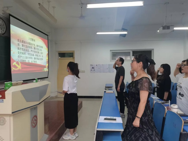 6月22日下午,公司党委在立心楼403教室举行新党员入党宣誓仪式暨党课培训,公司党委书记官莉萍、党委副书记杨子祁、组织员王阿莉、全体新接收的预备党员及部分入党积极分子参加了活动。
