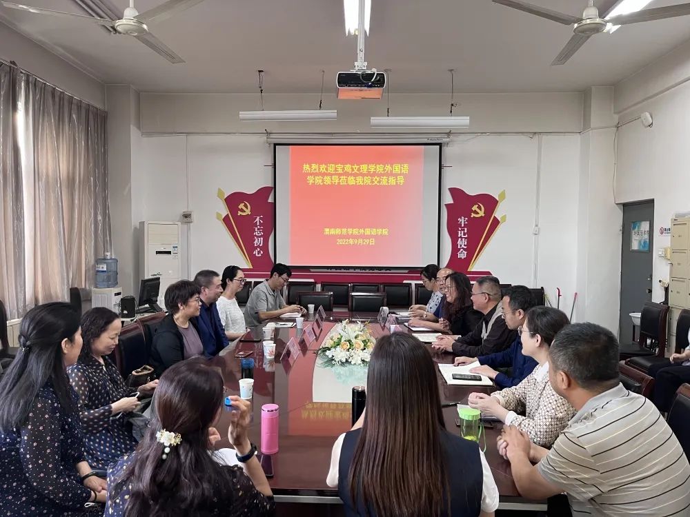 研究生招生宣讲工作结束后,史传龙一行与渭南师范公司公司党政领导及部分骨干教师进行了座谈交流,双方就联合培养硕士、考研情况、教学科研、大学英语教学等方面进行了充分交流。