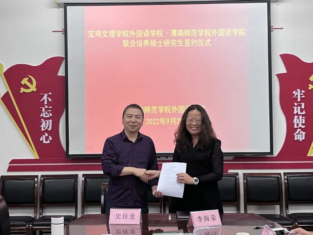 交流研讨结束,史传龙与李海荣共同签署了联合培养硕士研究生协议。