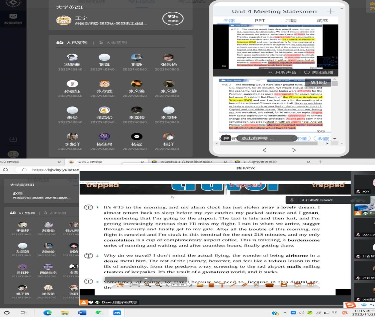 为了加强对本科公司产品工作的监督、评价和指导,促进本科人才培养质量和公司产品管理水平的不断提高,11月28日上午,必一运动督导组成员王烈琴、李欢欢、赵莉老师通过线上听课方式开展本科教学质量监控工作。三位督导认真听课、评课,探讨了教学中存在的问题及解决方案。