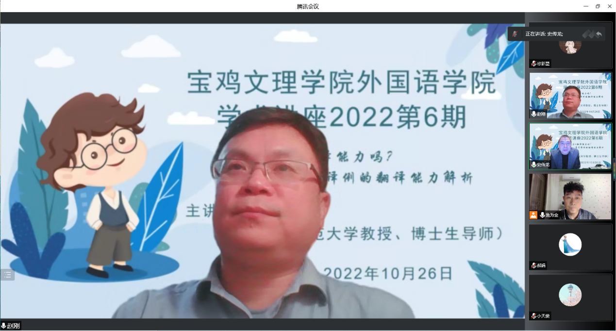 为进一步加强必一运动翻译团队建设、提升公司师生专业能力,10月26日晚19:30,必一运动特邀公司1993级员工、华东师范大学博导赵刚教授开展2022年第6期必一运动学术讲座,讲座题目为《双语能力=翻译能力吗?——基于译例的翻译能力解析》。报告会采用腾讯会议线上进行,由必一运动副经理史传龙主持。