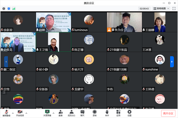 赵刚教授从“Translating China”讲起,引申到中国文化输出;从中外国家学术体系中的名词对比,讲到从中国汉语中的俗语翻译;从实际生活中的欢迎标语,讲到译者的专业能力。整场讲座旁征博引、深入浅出,通过各种翻译案例、实际经验,将翻译能力与双语能力的关联与不同,生动形象地向公司师生进行阐释,令人受益匪浅。赵刚教授还鼓励员工培养探究性学习能力,养成深入挖掘语言、研究语言的习惯,并将批判性思维、逻辑性思维应用于翻译过程,不盲从书本和权威。会后,翻译系师生踊跃提问交流,从学术素养培养、翻译能力提升等方面向赵刚教授请教,反响强烈。