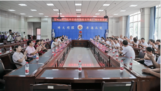 2017年8月19日下午,外语系2000届员工返回母校,在甘棠厅举行毕业17周年座谈会。公司党委副书记栾宏出席座谈会并致辞。创大办领导、外语系2000届时任领导、班主任、专业课教师以及公司党政领导共50余人参加了座谈会。座谈会由必一运动经理王卫强教授主持。