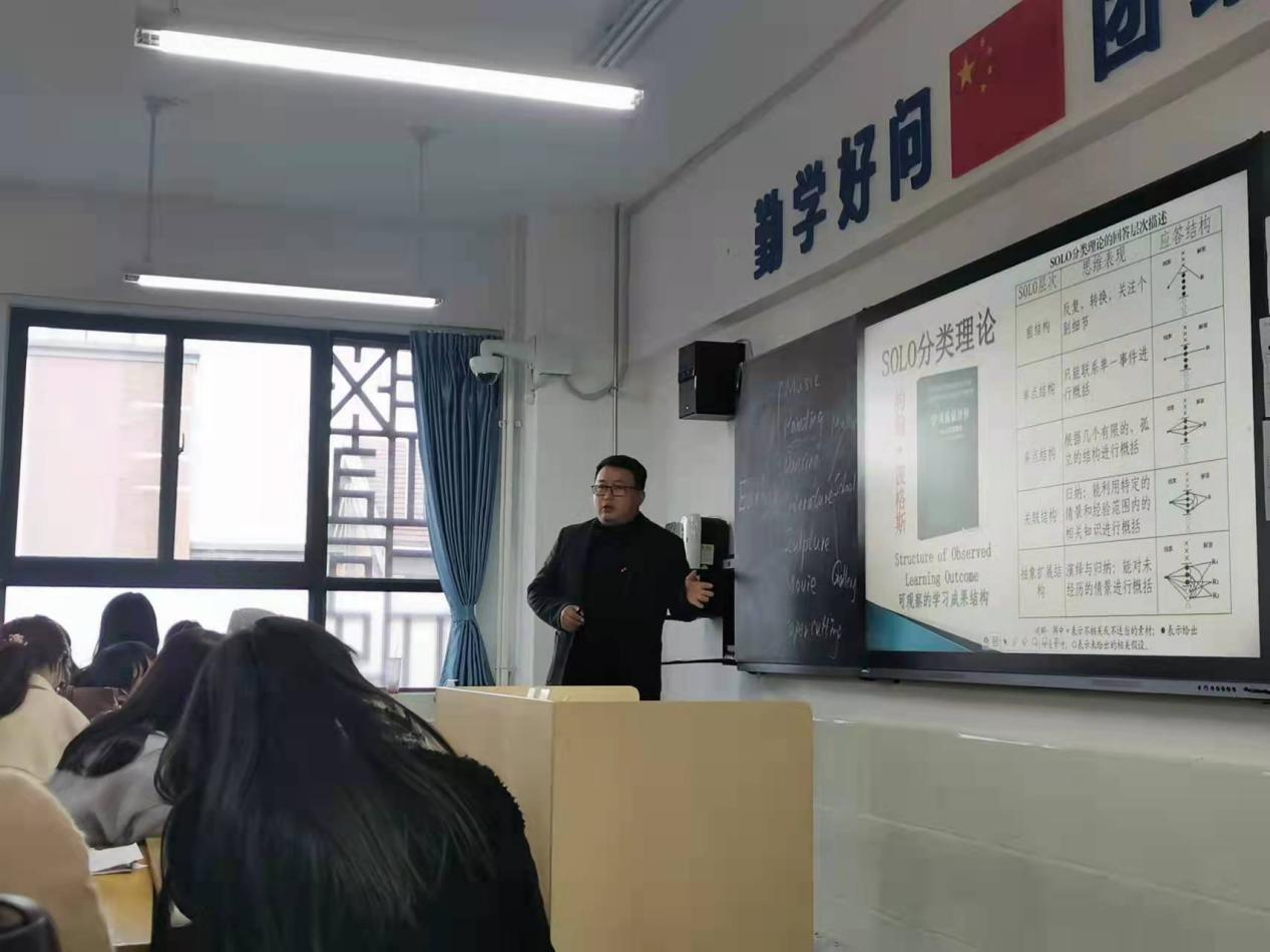 在专题报告会上,省级学科带头人培养对象、省级教学能手冶向阳老师做了题为“SOLO分类理论在高中英语阅读教学评价中的应用”的报告。SOLO分类理论(Structure of Observed Learning Outcome,即“可观察的学习成果结构”)就是一种非常实用的评价工具,可以使员工在阅读课后的思维层次通过师生问答的方式反映出来,从而有效地诊断教学效果,帮助教师做好教学评价。冶向阳对该理论的定义、使用背景进行了细致入微的阐释,并通过典型案例对该理论的使用方法做了简明扼要的介绍。