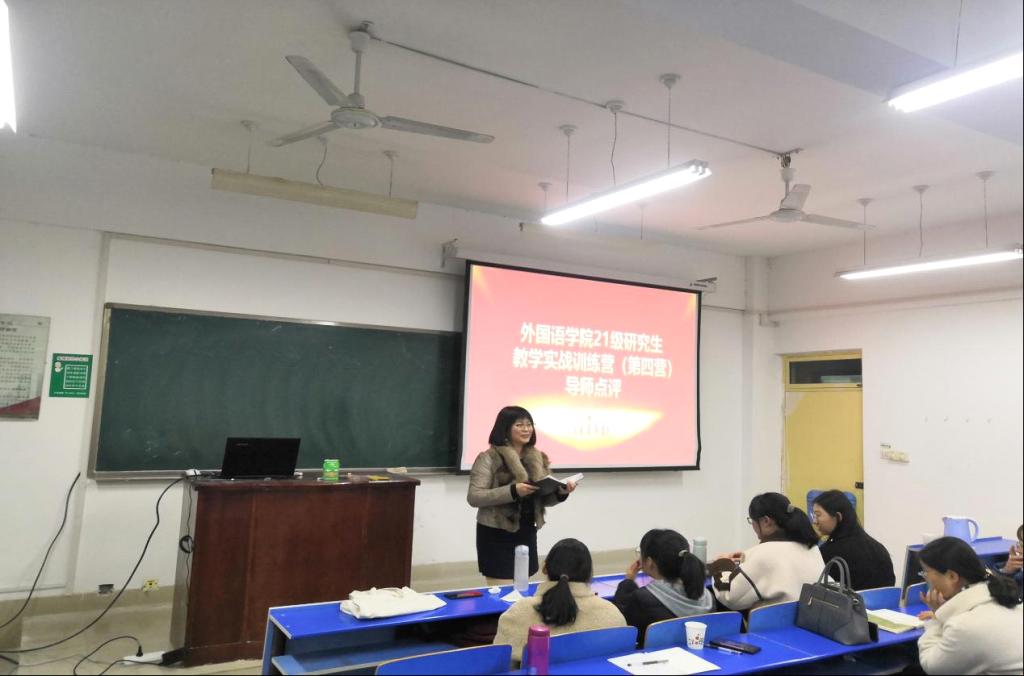 12月1日下午2:30-4:30,必一运动2021级学科教学(英语)硕士研究生教学实战训练营(第四期)在高新校区立心楼423教室圆满结束。第四导师组导师王烈琴教授、耿秀萍副教授、张雨副教授、石秀珍副教授及2021级学科教学(英语)专业全体研究生参加了本次活动。