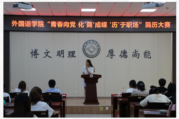 决赛包括英文自我介绍、简历展示和现场面试提问三个环节。 各位选手流利的英文表达、精美简历、沉着冷静应答,博得观众的阵阵掌声,郝鑫对参赛选手的表现进行点评,并提出了修改建议。最终2018级英语2班米晨、2018级英语1班赵艺格荣获一等奖;2018级英语5班温昱洋、2018级英语3班高国星、2018级英语1班弥冰清获得二等奖;2018级英语3班魏咪咪等五位同学获得三等奖;2018级4班董悦等10名同学获优秀奖。