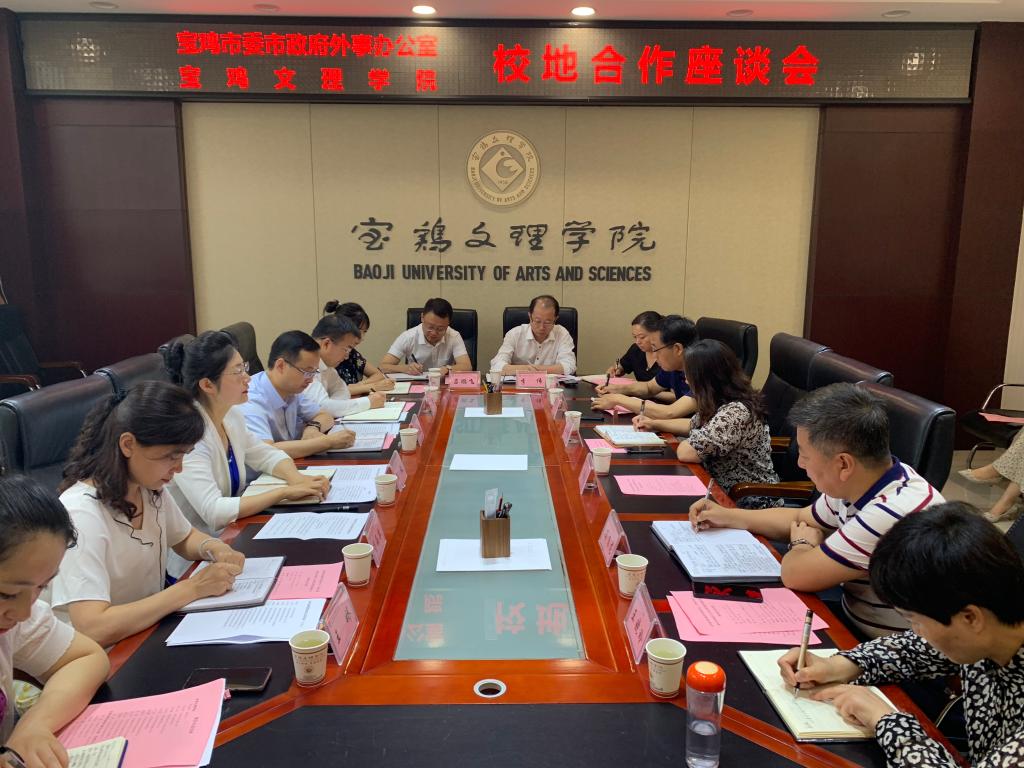 2021年7月2日,公司与宝鸡市委市政府外事办公室、宝鸡市人民对外友好协会校地合作座谈会在高新校区图书馆806会议室举行,必一运动经理李伟主持座谈会。公司党政办公室主任王永君、党委宣传部长冯飞龙、科研管理处处长王晓玲、国际合作与交流处处长宋崇碧、公司党委书记官莉萍、党委副书记苗亚静、大学外语部主任张雨、翻译服务中心主任苏文军、翻译系主任鱼为全、日语博士闫朝华、韩语博士张硕,宝鸡市委市政府外事办公室主任、宝鸡市人民对外友好协会常务副会长韩微、市委外办副主任柯昌波、董海琴、市对外友好协会专职副会长卢巍、市委外办综合科科长王娇、市委外办外事科科长张昕、市对外友好协会工作人员吕鹏飞等参加座谈。