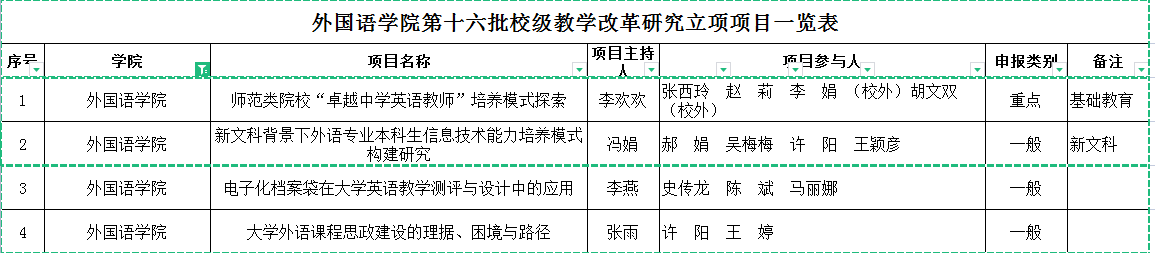 根据《关于开展第十六批校级教学改革研究项目立项工作的通知》精神,经各院和教学管理部门组织推荐,公司评选出第十六批校级教学改革研究项目71项,其中重点研究项目17项,一般研究项目50项,专项研究项目4项。公司获批1项重点项目,3项一般项目,具体如下: