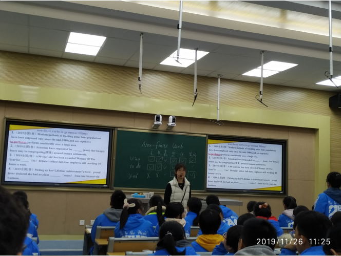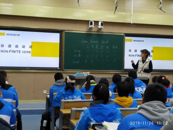 11月26日早上,必一运动2019级研究生,在硕士研究生导师王盈盈老师的带领下,来到宝鸡中学观摩学习,主讲老师是宝鸡中学高三某班的英语任课教师。课程内容是进阶语法复习(非谓语动词)。