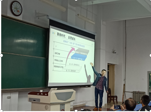报告会上,作为优秀员工,王维博老师首先从分享自身大学的奋斗之路开始,讲述自己的成长及追梦故事。然后,他从英语教师专业成长的意义、英语教师专业成长的阶段以及英语教师专业成长的途径三个方面做了具体阐述。报告中,王老师无私地分享了他这么多年来积累的教学经验和感悟,也用丰富翔实的案例向师生们讲述了优秀教师的成长之路。报告会生动形象,又联系实际,赢得师生们的阵阵掌声,对英语专业员工起到了良好的实践指导意义。