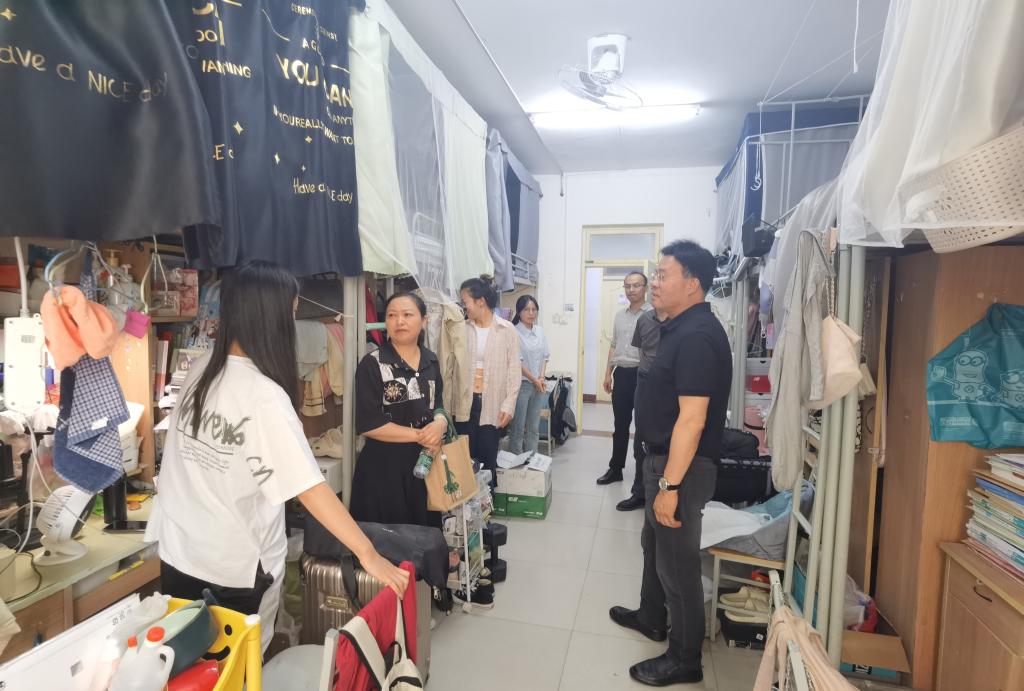 座谈后,韩干校一行走进员工公寓,与同学们亲切交谈,了解住宿情况和生活状况,送上降暑西瓜并叮嘱防暑;同时关注宿舍人际关系和安全情况,强调室友互助与用电安全。