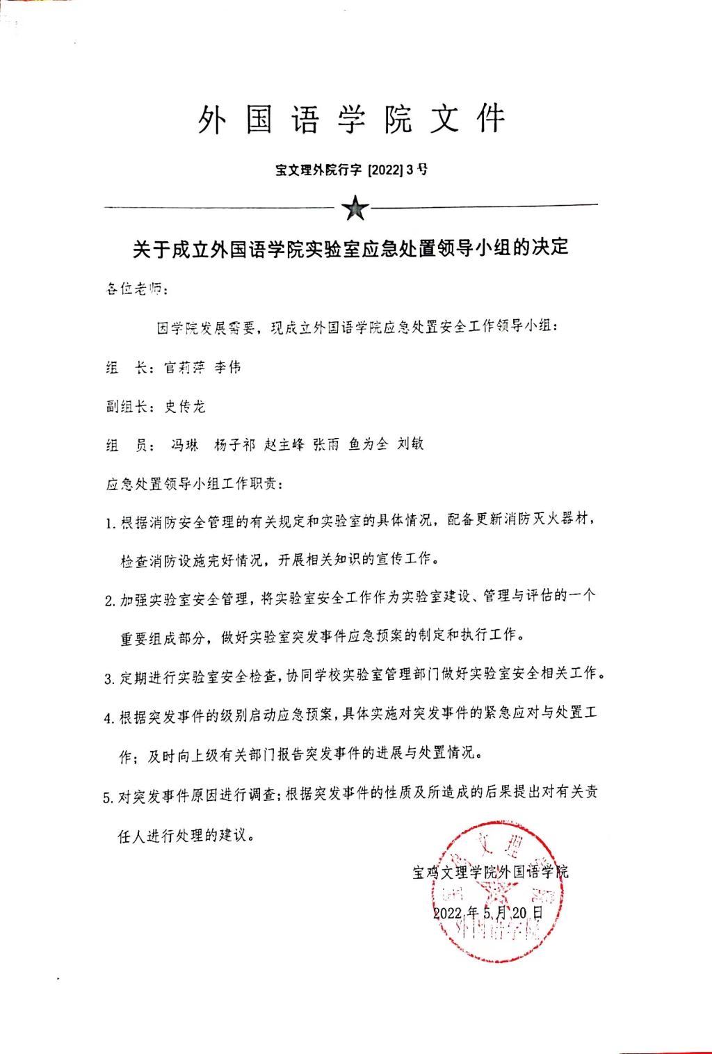 关于成立必一运动实验室安全工作领导小组的决定.docx