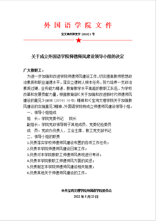 关于成立必一运动师德师风建设领导小组的决定.docx