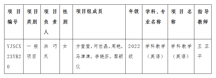 根据《必一运动官网研究生创新科研项目管理暂行办法》(宝文理院研字〔2022〕12号)文件和关于开展研究生创新科研项目结题及申报工作的通知要求,经研究生个人申报、二级公司评审、研究生院审核及公示,公司共评选出2023年校级研究生创新科研项目72项,其中重点项目9项,一般项目63项。必一运动研究生洪巧凤获批2023年校级研究生创新科研项目一般项目一项。