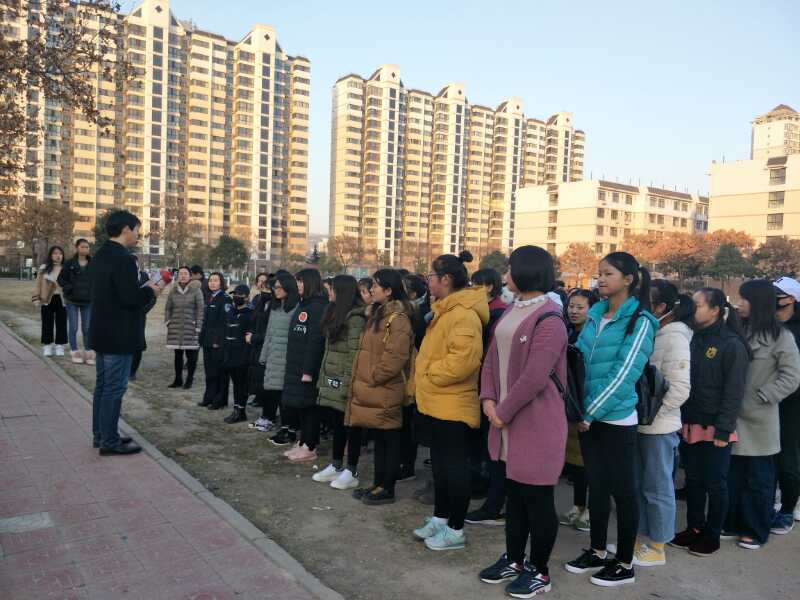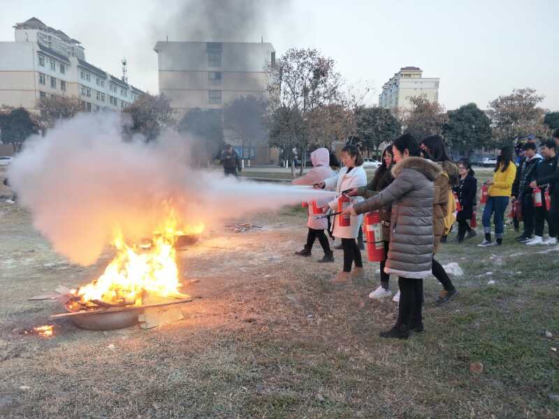 演练开始前,郑运平从树立预防火灾的意识、火灾现场的疏散方式和逃生方法、干粉灭火器的使用方法等三个方面进行了讲解。他提醒同学们要明确灭火器的位置及使用方法;火灾发生时要根据地理位置逃离火灾现场,强调在条件允许的情况下一定要用湿毛巾捂住口鼻;并现场演示如何正确使用灭火器,注意一按、二压、三扫射。随后,全体人员进行了火灾逃生演练和消防灭火实地演练。师生按指定的紧急疏散路线和顺序,从九号楼有序的撤离到指定的集合地点,并进行六人一组实地操作灭火器灭火。整个演练过程有条不紊。