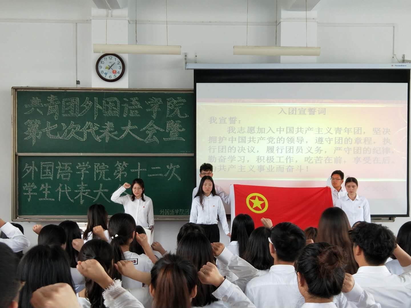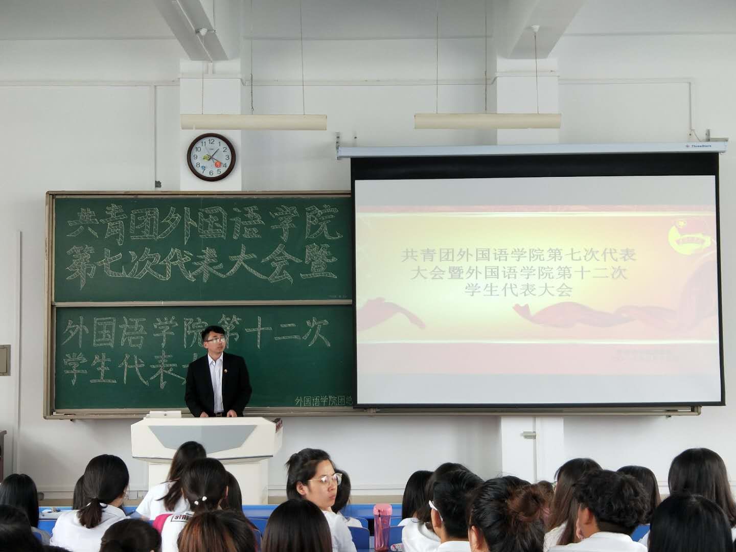 在新校区立心楼408教室召开共青团必一运动第七次代表大会暨必一运动第十二次员工代表大会。公司党总支副书记苗亚静、团总支书记段振业及团员代表、员工代表100余人参加了会议。