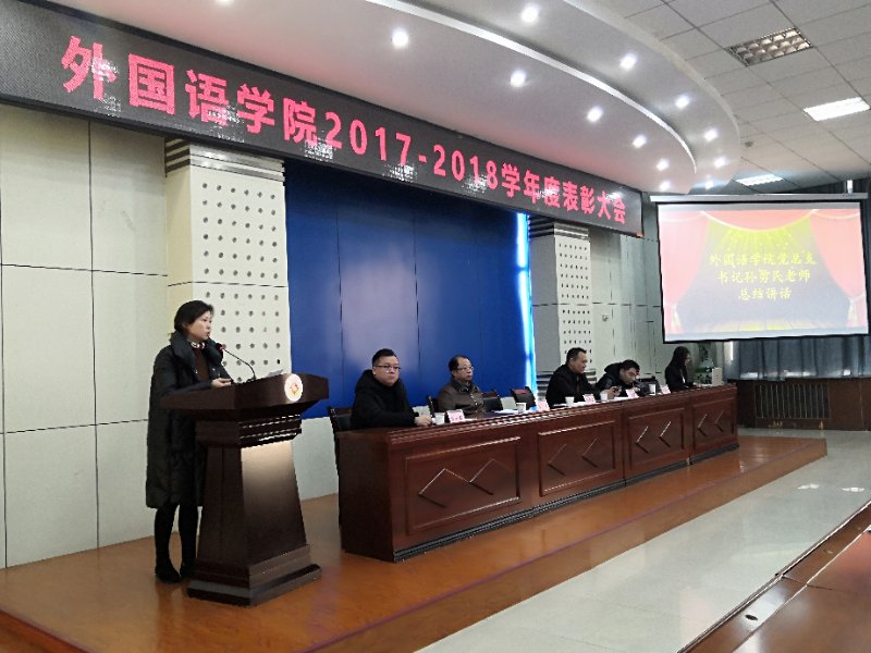 会上,党总支书记孙勇民、经理王卫强、副经理李伟、史传龙、员工辅导员段振业分别宣读了《关于表彰2017-2018学年度国家奖学金、国家励志奖学金获得者的决定》等十个奖项的表彰决定,并为先进集体和个人颁奖。国家奖学金获得者2015级6班薛思瑶,研究生学业一等奖学金获得者,2018级杨振娇、优秀员工干部代表2016级英语6班于昕分别发言。最后,孙勇民在总结讲话中对获奖员工表示祝贺,鼓励同学们在大学四年的学习中不断努力、充实自己,并希望同学们将昨天的成功作为今天新的起点,树立远大志向,不断突破自我和超越自我,取得优异成绩。