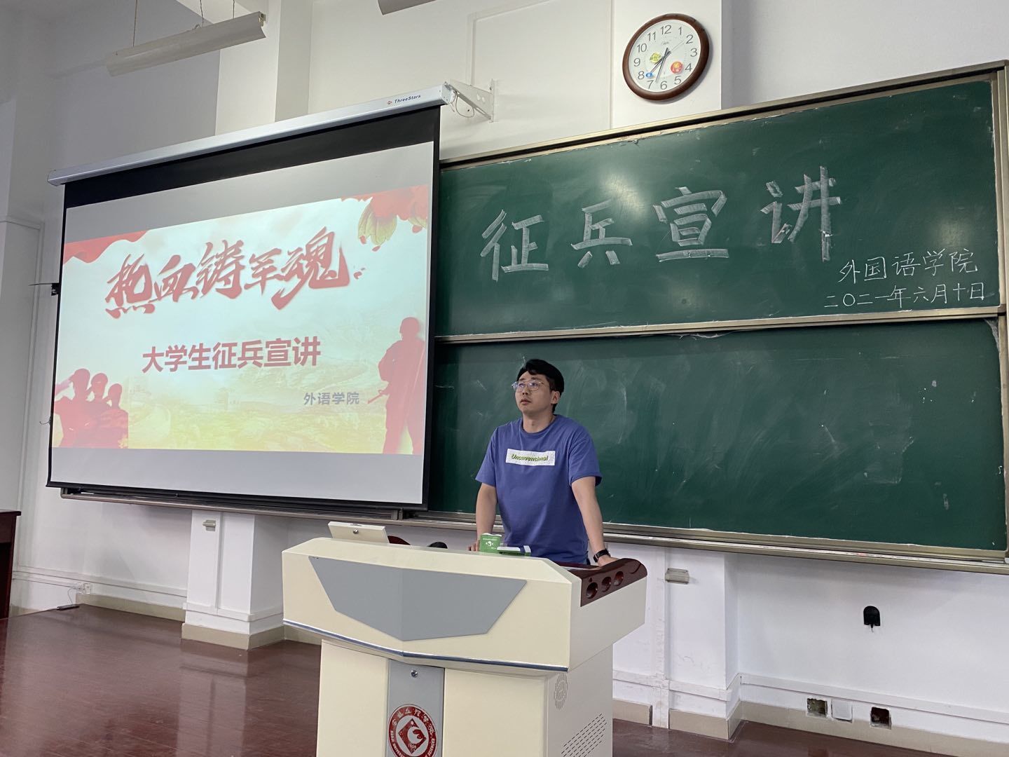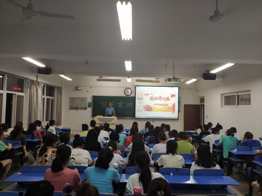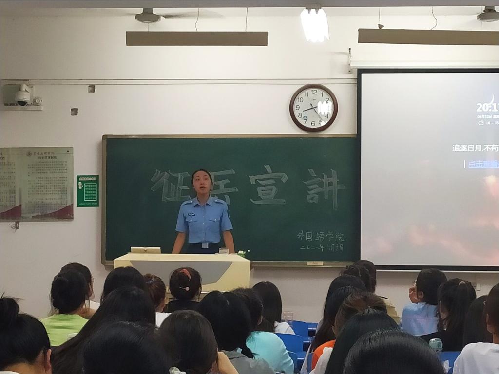宣讲前,团总支书记段振业就国家老员工入伍相关文件做了宣讲。宣讲开始后,来自文传院2018级的马悦首先对老员工入伍相关政策做了介绍,并讲述了自己作为通讯兵的经历。其次,来自教育公司2018级的林敏在宣讲过程中对老员工入伍相关政策的要求做了补充说明,并结合自己的亲身经历为同学们介绍了有关空降兵的相关情况和难忘的经历。接下来,陈美玲讲述了自己在队伍里难忘的生活经历,并向大家详细解读了老员工入伍政策与要求。接着,张玲娟用自己五年的火箭兵经历激励同学们奋发向上。宣讲最后,通过观看《军人的年》让同学们更加了解了中国军人的青春和热血,展示了中国军人的英雄气概。