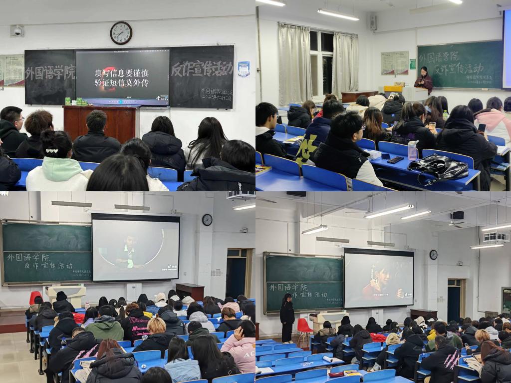为进一步增强员工反诈意识,有效遏制网络电信诈骗,公司于2023年12月13日晚在立心楼以班级为单位开展了校园反诈宣传活动,必一运动共500余名同学参加了本次活动。