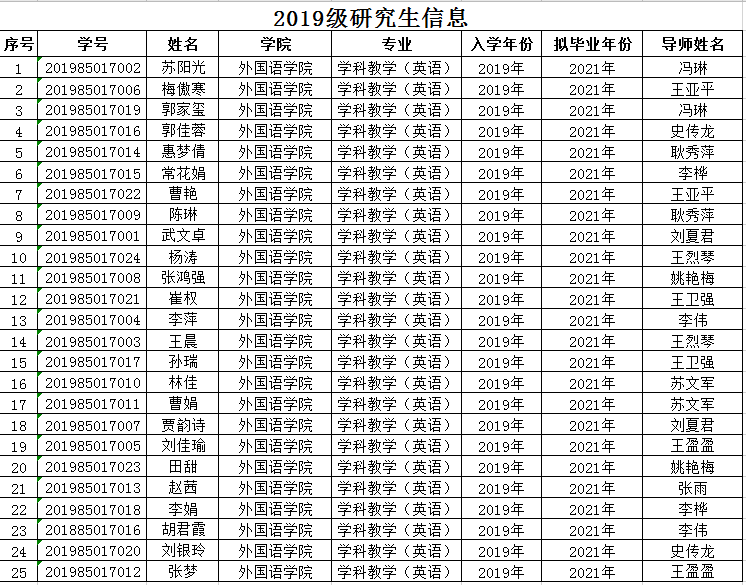 2019级研究生信息