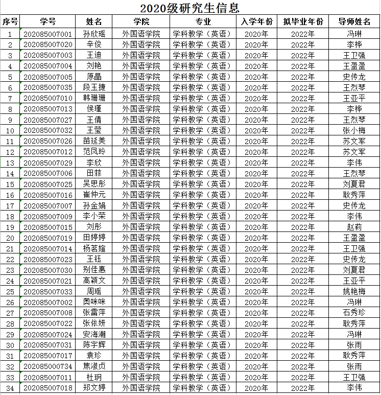 2020级研究生信息